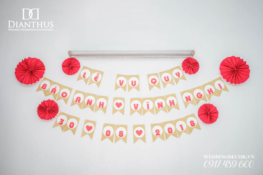 - 01 Bộ chữ xốp dán tường, hoặc 01 bảng chữ trang trí cụm hoa vải.