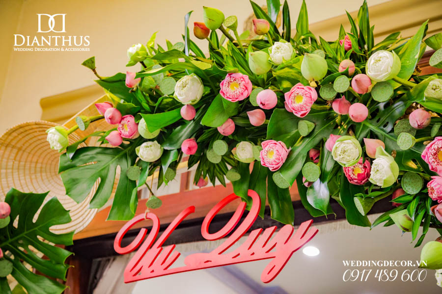 - 01 Bảng chữ cổng hoa: Tân Hôn/Vu Quy/Đính Hôn (tùy chọn).