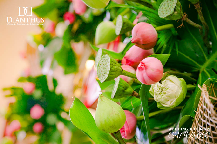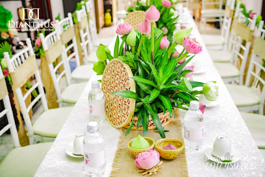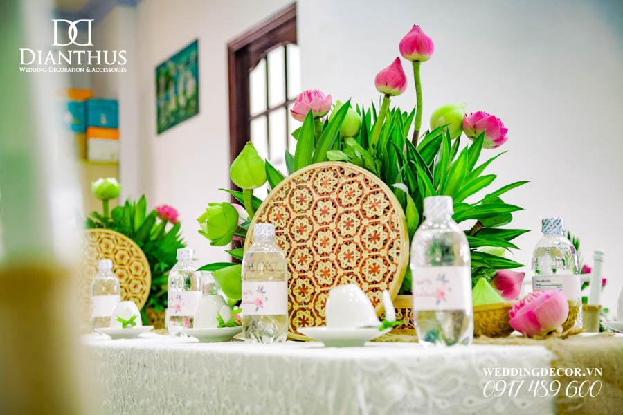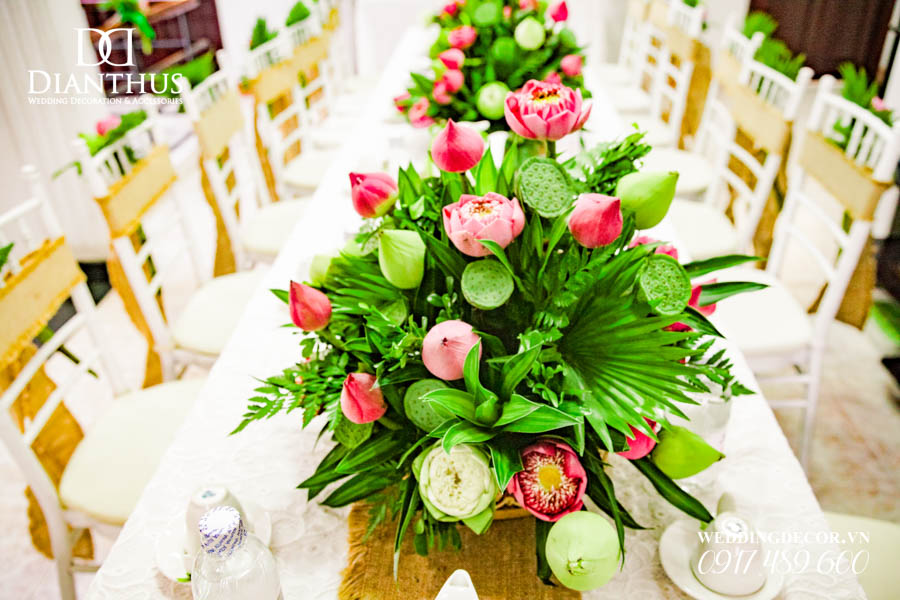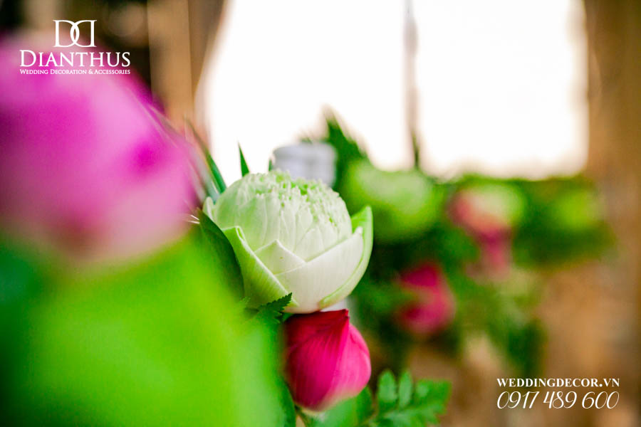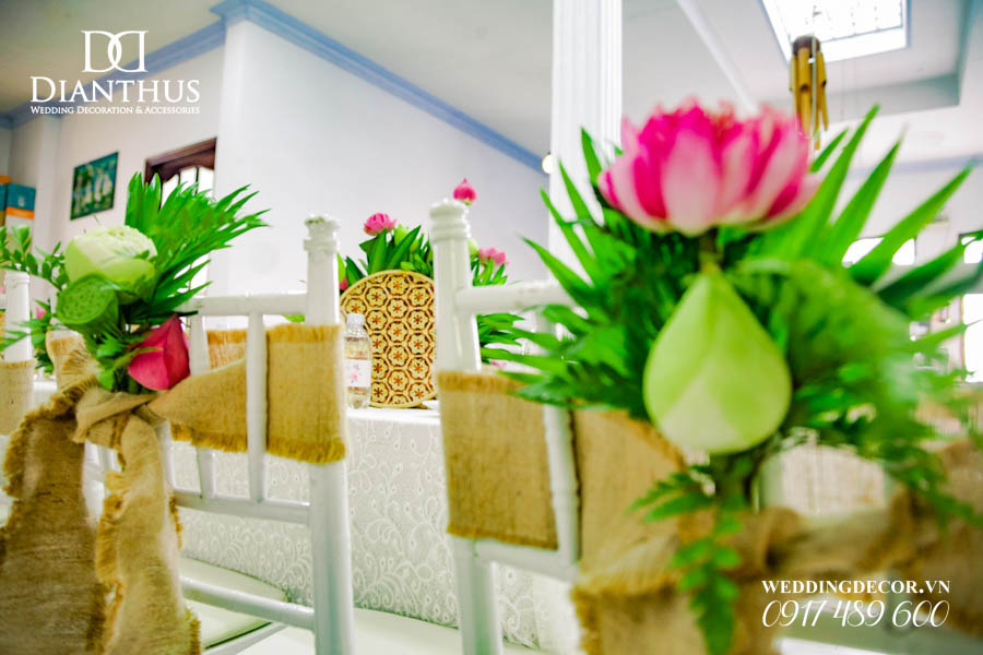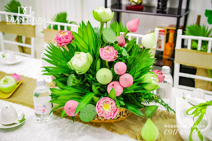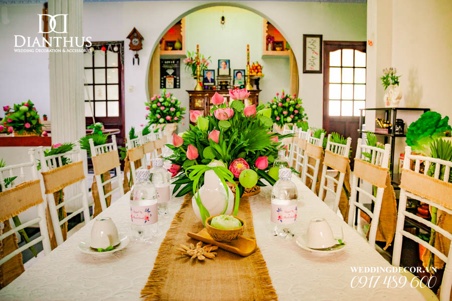 Dịch vụ Trang Trí Nhà Lễ Gia Tiên Hoa Tươi – Gói Anita Lotus đã được sử dụng trong Lễ Vu Quy của cặp đôi Quỳnh Vy & Thanh Danh. Ngoài ra, Quý Khách có thể xem thêm nhiều dự án trang trí khác do Dianthus thực hiện tại Menu PORTFOLIO