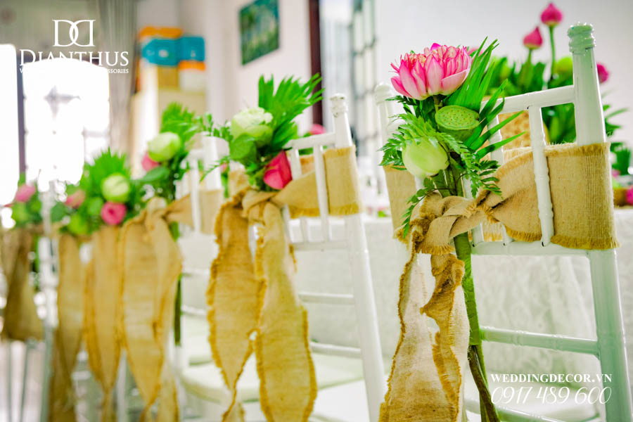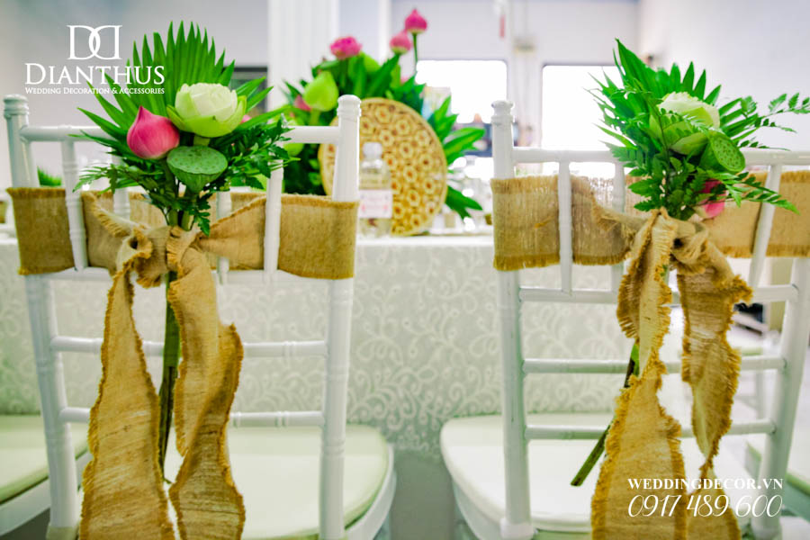 - 12 Ghế dựa/ghế Tiffany thắt nơ kèm cụm hoa theo