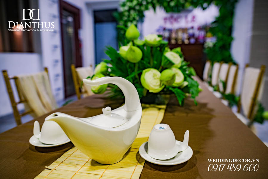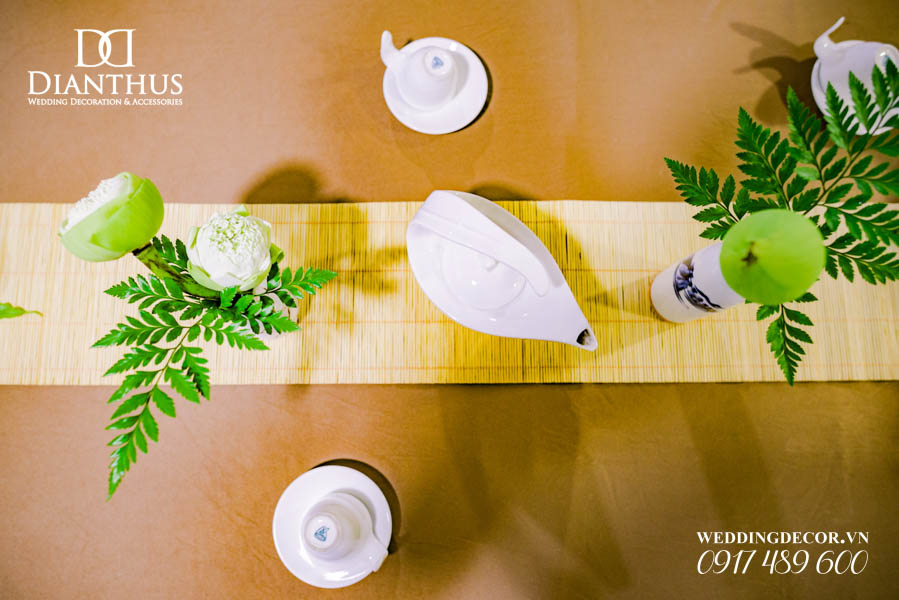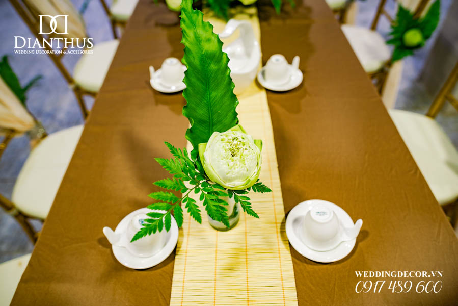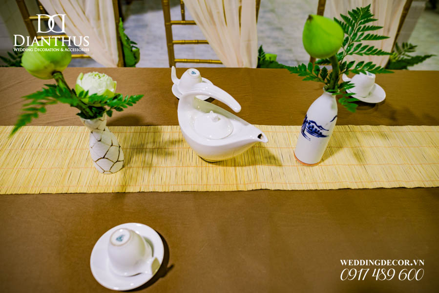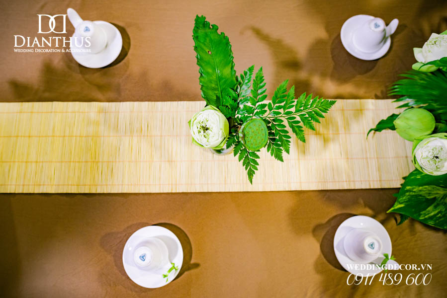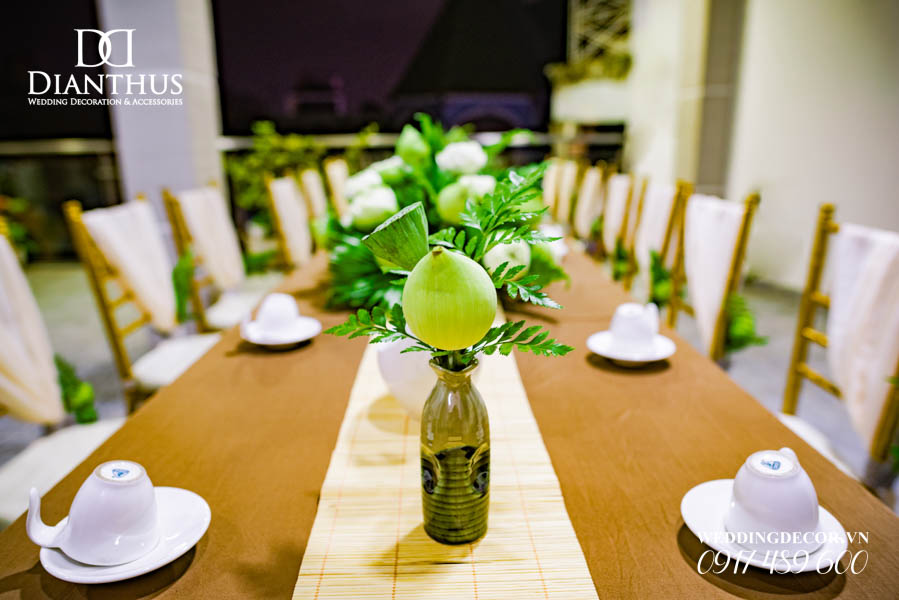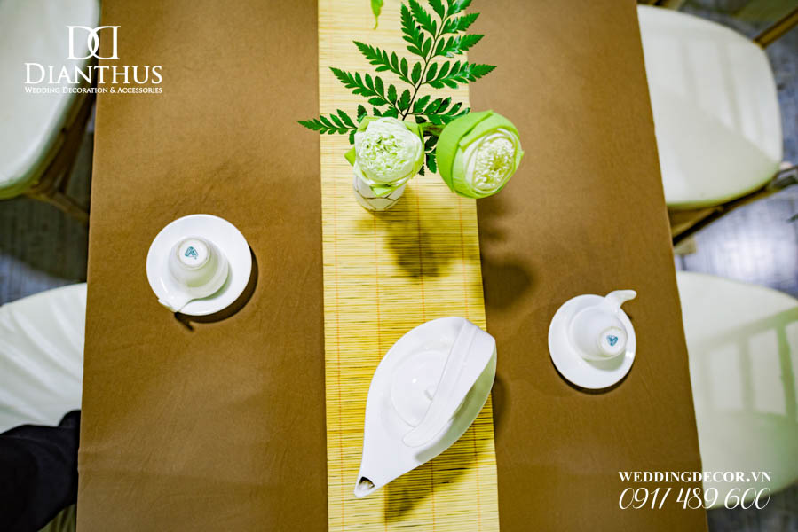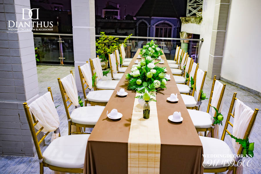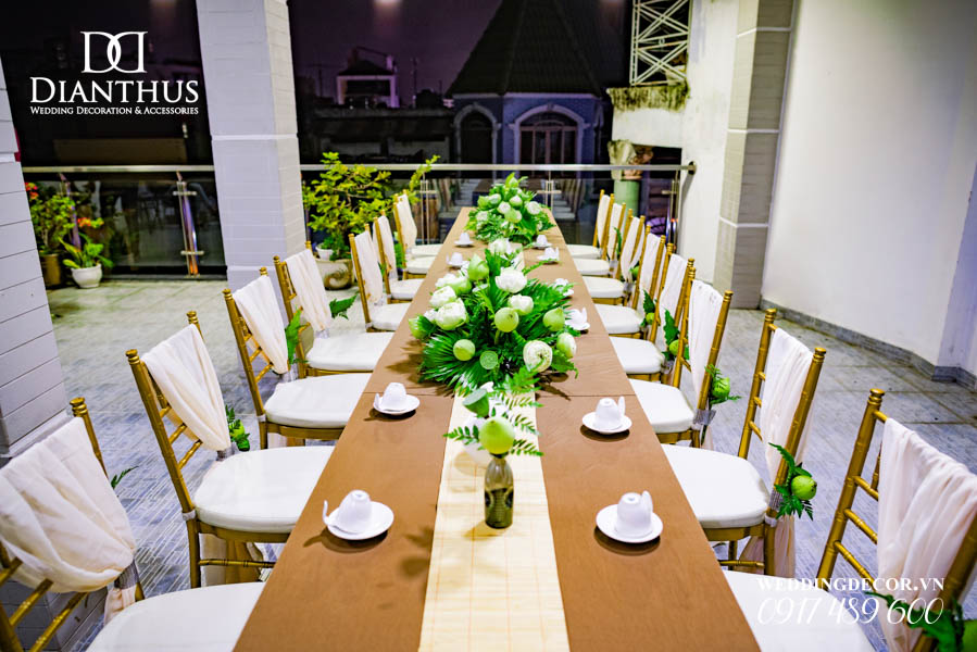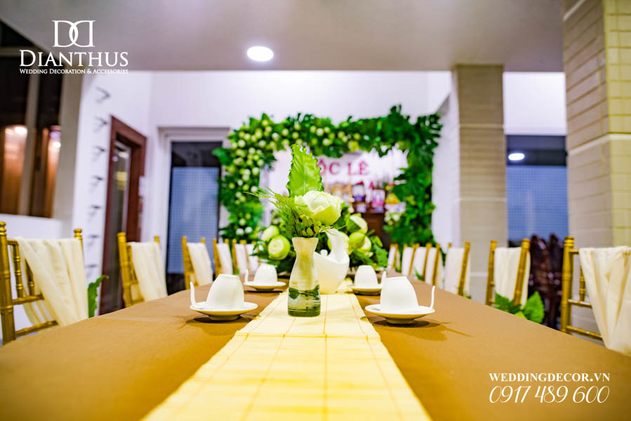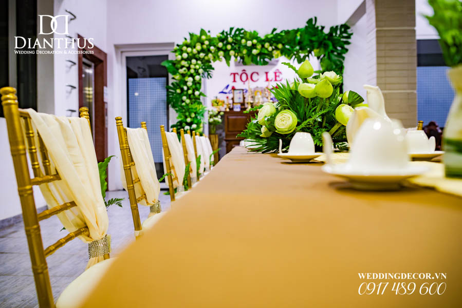 - 02 Bàn hai họ phủ khăn theo tone màu.