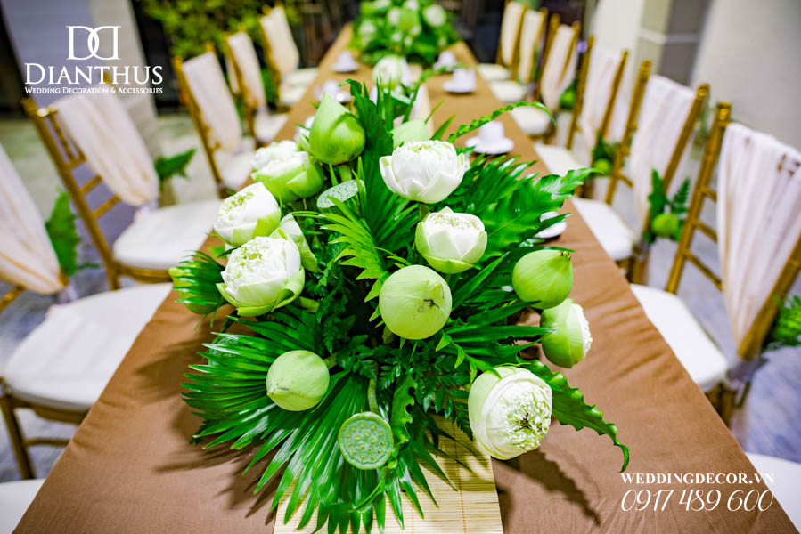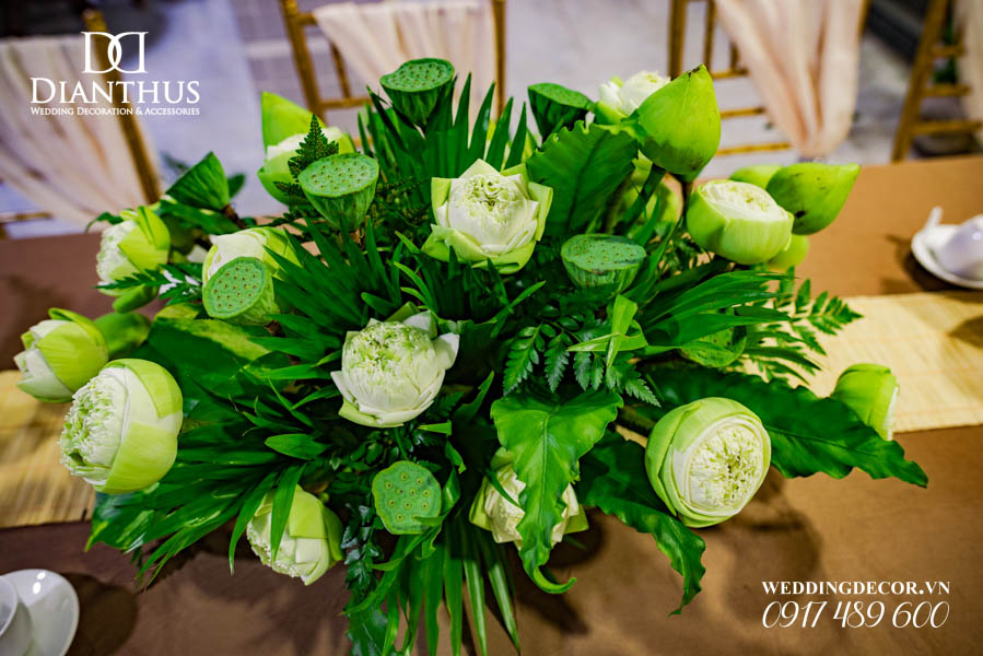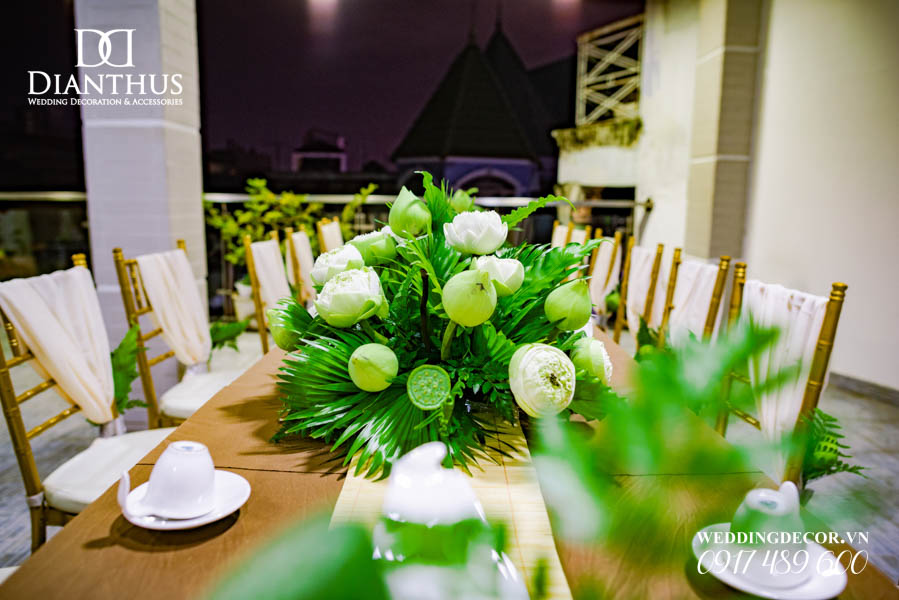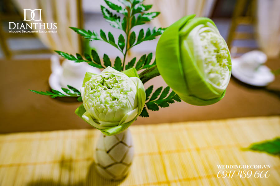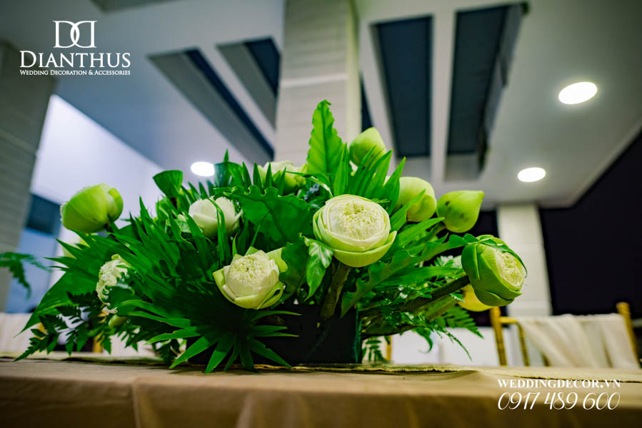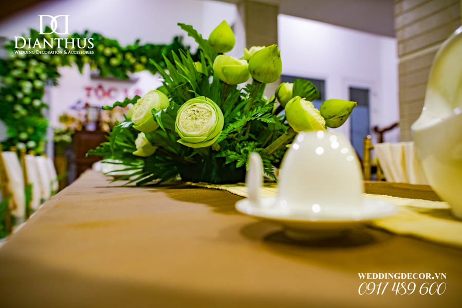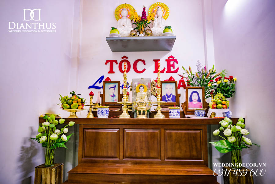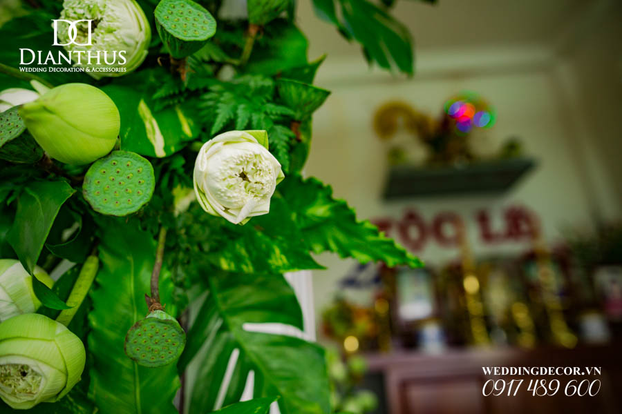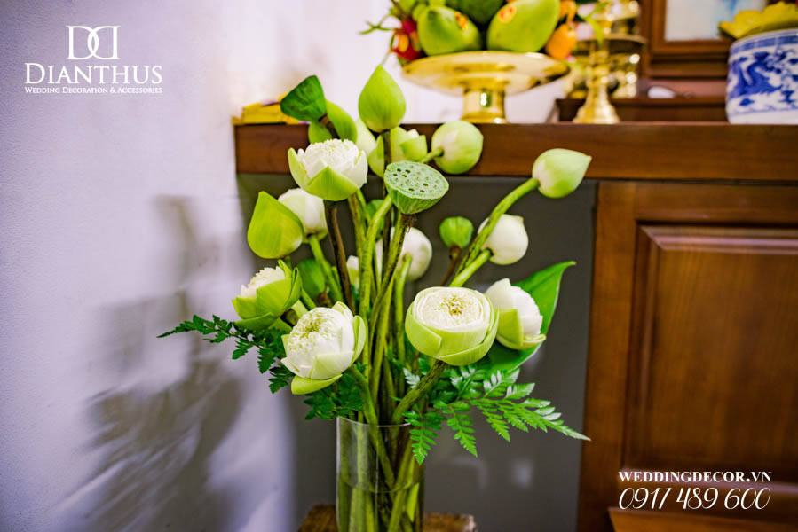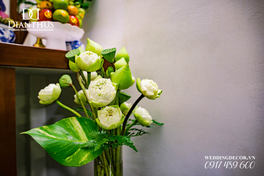 Dịch vụ Trang Trí Nhà Lễ Gia Tiên Hoa Tươi – Gói Bianca Lotus đã được sử dụng trong Lễ Vu Quy của cặp đôi Hiền Lê & An Huỳnh. Ngoài ra, Quý Khách có thể xem thêm nhiều dự án trang trí khác do Dianthus thực hiện tại Menu PORTFOLIO