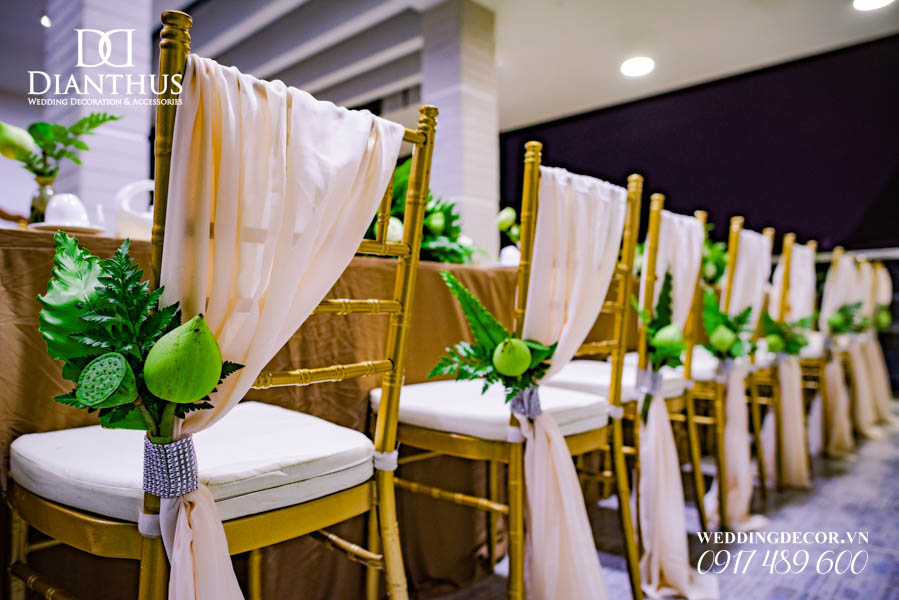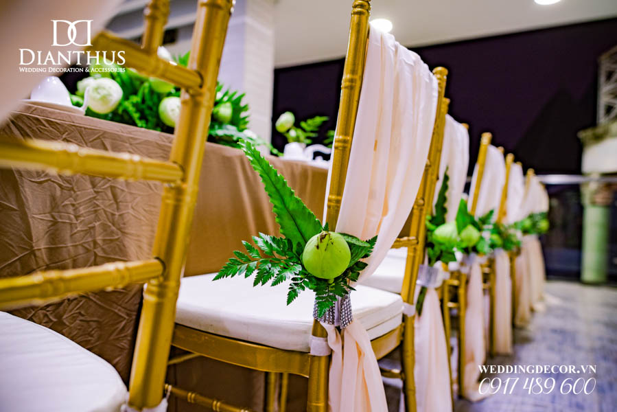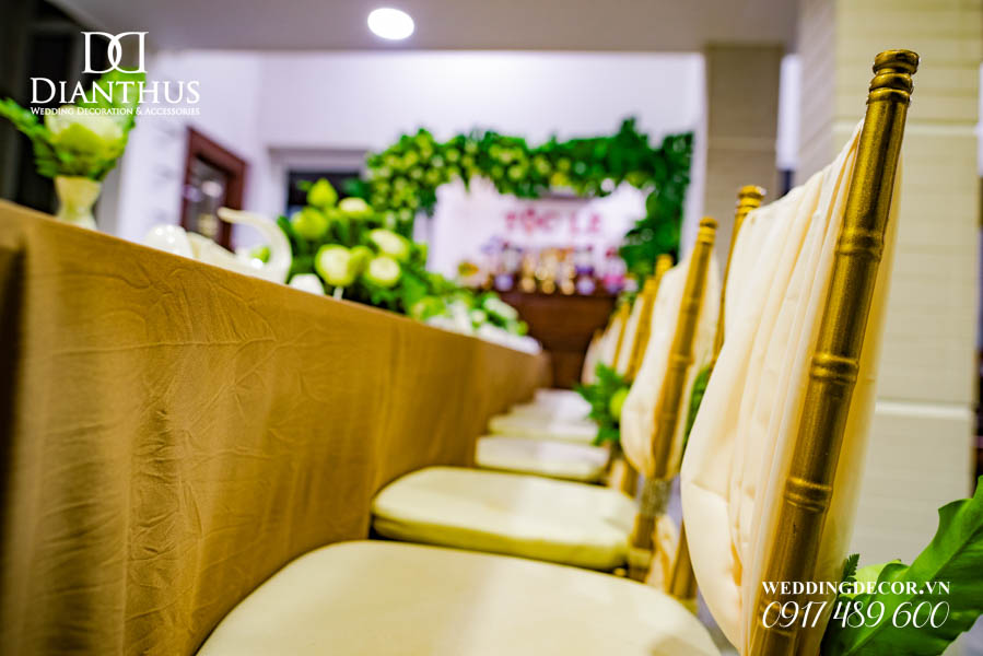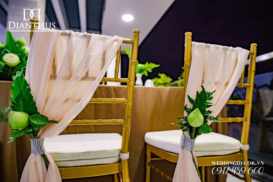- Gói này đã bao gồm bộ ghế Tiffany, chỉ phụ thu trong trường hợp phát sinh thêm ghế. Chi phí 600,000 VNĐ/gói/12 ghế.