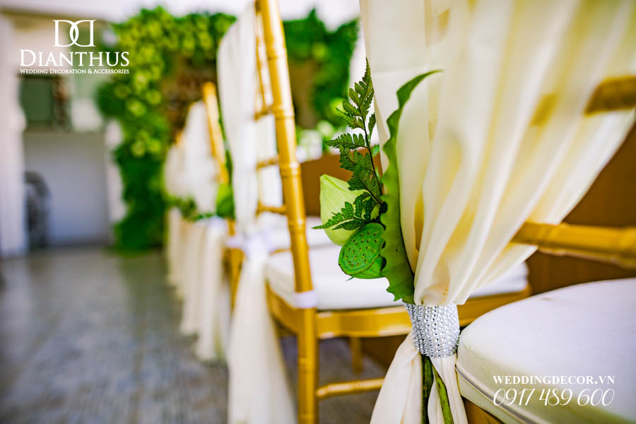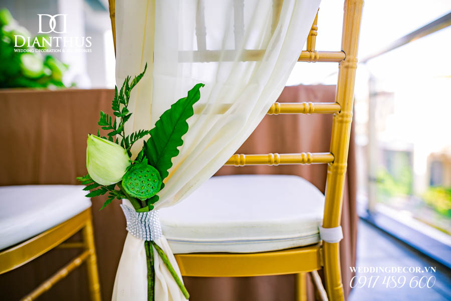 - 12 Ghế dựa/ghế Tiffany thắt nơ kèm cụm hoa theo