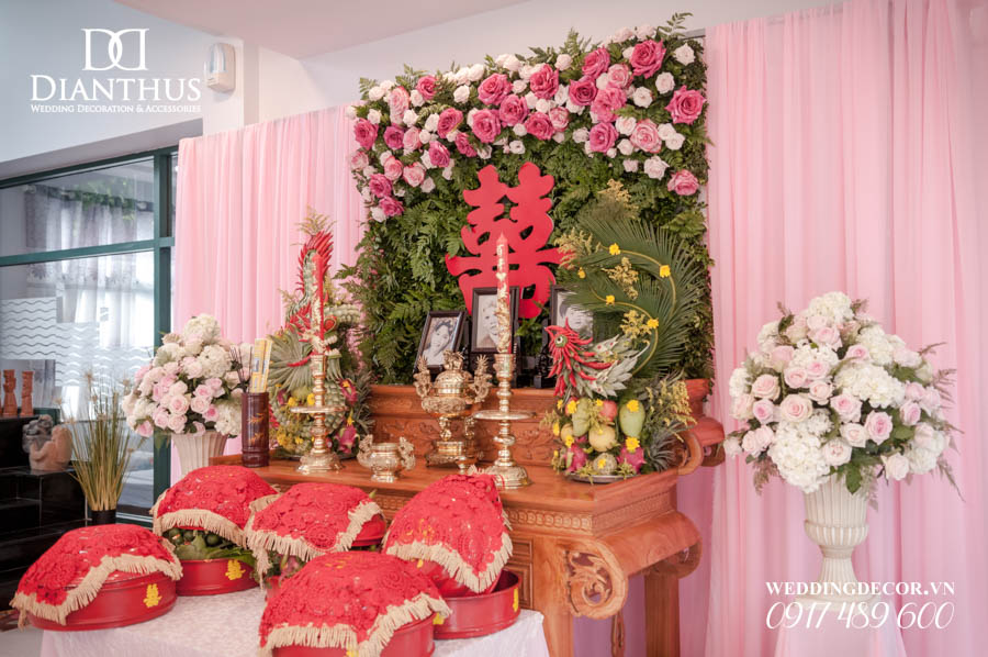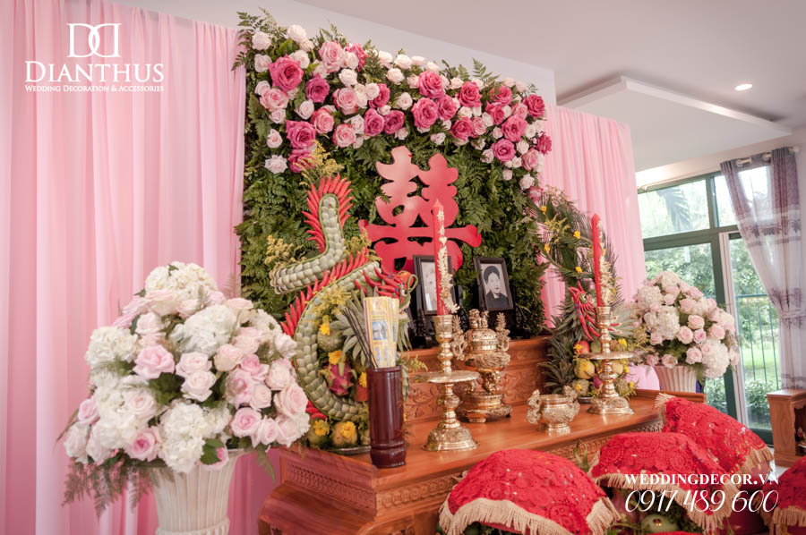 – Trang Trí Nhà Lễ Gia Tiên Hoa Tươi – Gói Olwen Scarlet (giá từ 40 triệu)