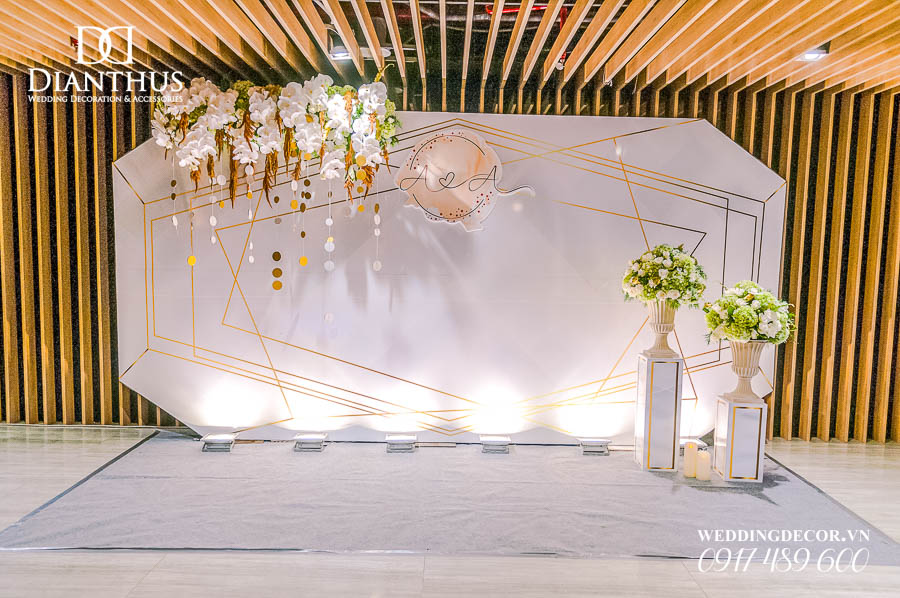Mỗi gói dịch vụ Trang Trí Tiệc Cưới thường bao gồm các hạng mục như sau: Khu vực đón khách (bảng welcome, cổng hoa, backdrop chụp ảnh, bàn gallery); Khu vực đãi tiệc (lối đi lên sân khấu, sân khấu, bàn bánh cưới, tháp rượu Champagne, bàn tiệc…). Chi phí một gói dịch vụ trung bình sẽ dao động từ 40 triệu trở lên/tiệc tại Sài Gòn. Hoặc 60 triệu trở lên/tiệc khi bạn muốn Dianthus trang trí tại tỉnh. Dianthus đã thực hiện rất nhiều dự án trang trí mà bạn có thể xem tại mục PORTFOLIO này.